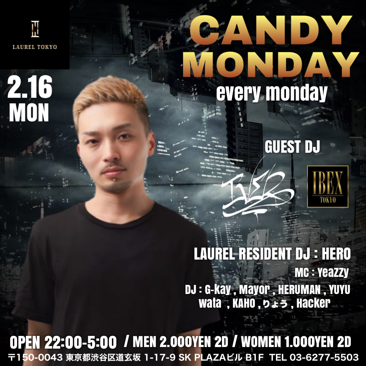 -MUSIC- HIPHOP,R&B,ALL OPEN FORMAT -OPEN- 22:00~5:00 -ENTRANCE- MEN 2,000/2D WOMEN 1,000/2D -GUEST DJ- IVER -LAUREL …続きを読む