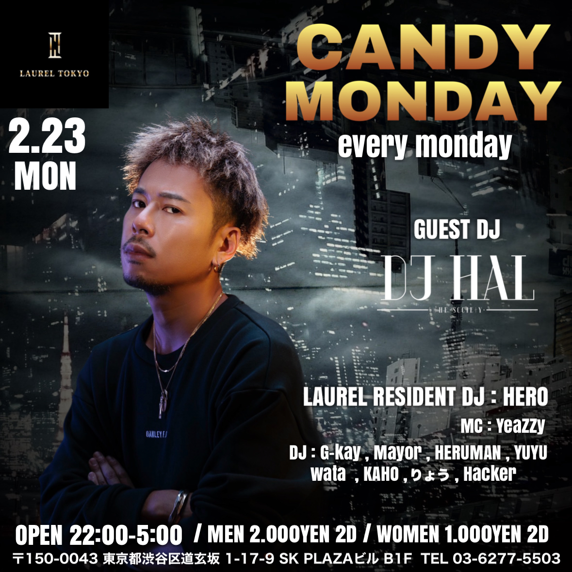 -MUSIC- HIPHOP,R&B,ALL OPEN FORMAT -OPEN- 22:00~5:00 -ENTRANCE- MEN 2,000/2D WOMEN 1,000/2D -GUEST DJ- HAL -LAUREL T …続きを読む